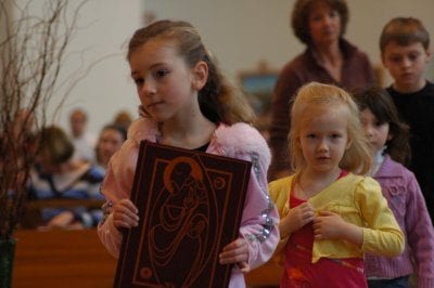 De bedoeling van de kinderwoorddienst is dat de kinderen na het openingsgebed (voordat de lezing uit de Schrift begint) samen naar een aparte ruimte gaan. Het is mooi als een van de kinderen dan voorop loopt met het Evangelieboek voor kinderen om aan te geven dat ook de kinderen de Liturgie van het Woord gaan vieren, in verbondenheid met de volwassenen uit de kerk. Dit evangelieboek kun je ook begeleiden met kaarsen.