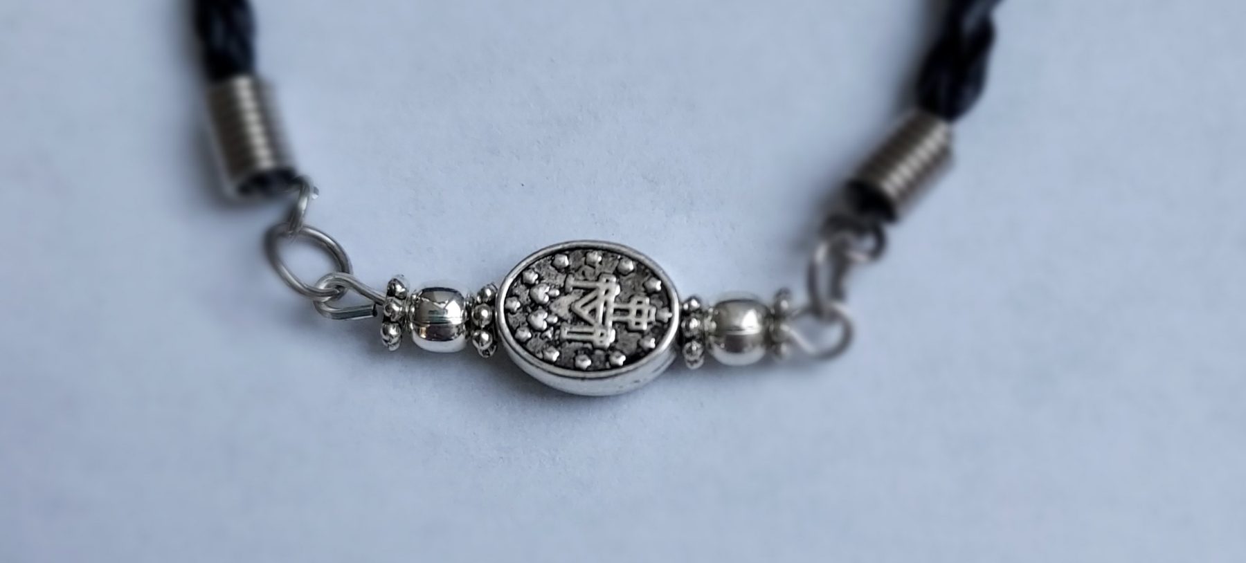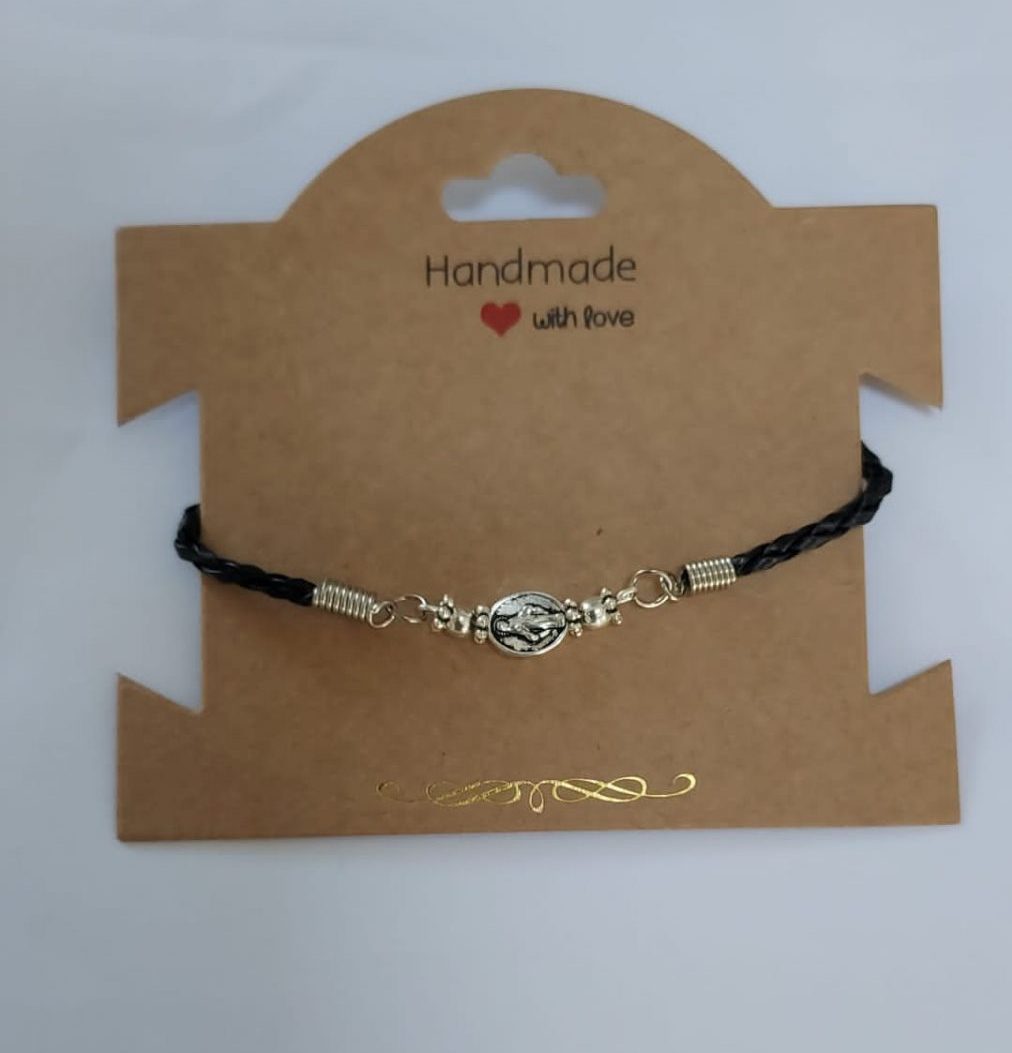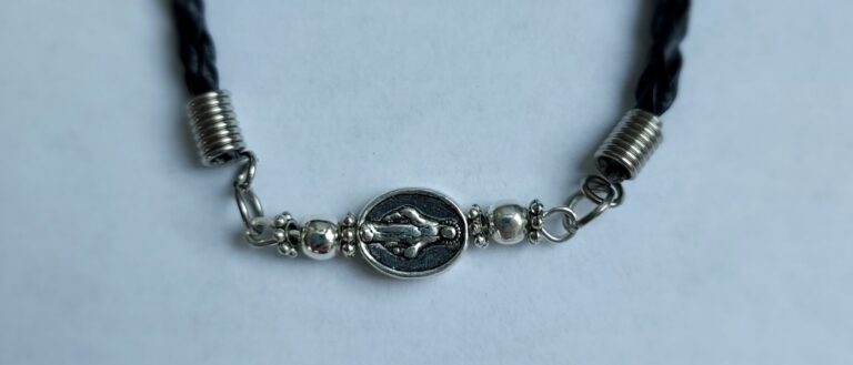 Armband met een zilverkleurige Maria medaille (doorsnede medaille 1 cm).  Het armbandje is 19 cm lang en verstelbaar met een sluiting tot 25 cm.