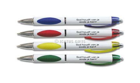 Verschillende kleuren met: God houdt van jou zoals je bent. Mooi om als boodschap aan kinderen/tieners en jongeren mee te geven. (prijs is per pen)