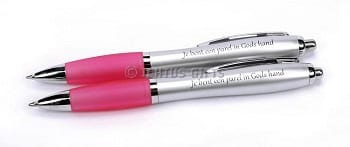 Balpen roze met mooie tekst: Je bent een parel in Gods hand. Mooi uitdeel presentje.