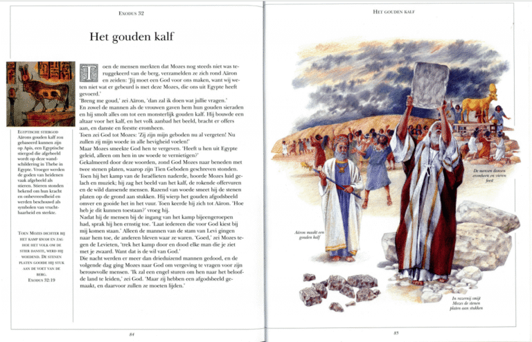 Dit rijk geïllustreerde boek bevat alle belangrijke bijbelverhalen. De poëzie van de oorspronkelijke tekst is bewaard gebleven. Een redactieraad van theologen, archeologen en onderwijskundigen heeft deze vertaling van Harriët Laurey bewerkt. Een prachtig boek voor ouders en kinderen. Een ruime selectie van bijbelverhalen uit het Oude en het Nieuwe Testament. Daarbij komen ook boeken als de Psalmen, de brieven van Paulus en de Openbaringen aan de orde, gedeelten die in oudere navertellingen van de Bijbel vaak werden overgeslagen. Jammer genoeg gaat het bij deze laatstgenoemde verhalen maar om enkele bladzijden en is de keuze voor de rest vrij traditioneel, net als de gekozen volgorde. De verhalen worden sober naverteld en blijven dicht bij de bijbeltekst, in dit geval die van de ‘Groot Nieuws Bijbel’. Het boek is rijk geïllustreerd met kleurenfoto’s- en tekeningen en ziet er mede daardoor aantrekkelijk uit. Rond de tekst van de verhalen wordt in een kleinere letter, aangevuld met illustraties, informatie gegeven over bepaalde zaken die in het betreffende verhaal aan de orde komen. Daarnaast wordt apart een aantal onderwerpen, als oorlog en vrede, het dagelijks leven in Jezus’ tijd en de reizen van Paulus, verder uitgediept. Het boek heeft met name door deze achtergrondinformatie een meerwaarde. Achterin zijn een register en een alfabetische lijst van “Wie is wie in de bijbel ?” opgenomen.