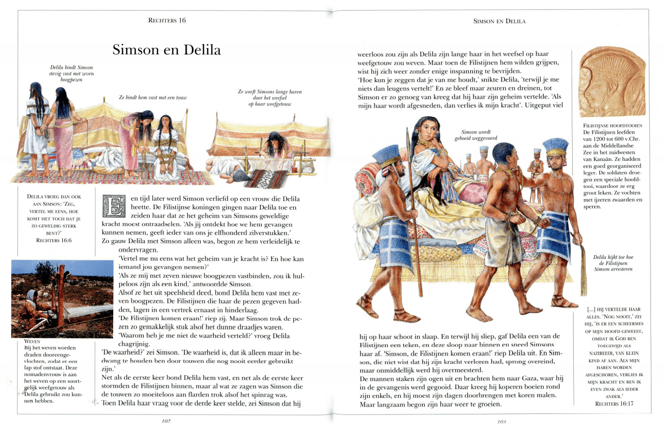 Verhalen en feiten in woord en beeld (S. Hastings). Alle belangrijke bijbelverhalen verteld en voorzien van kleurenfoto’s en tekeningen van mensen, dieren, planten en landschappen uit het bijbelse land. Mooie bijbel als voorbereiding op de volwassenbijbel. (v.a. 11 jaar)