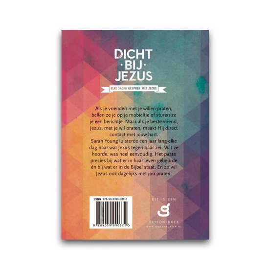 Als je vrienden met je willen praten, bellen ze je op je mobieltje of sturen ze je een berichtje. Maar als je beste vriend, Jezus, met je wil praten, maakt Hij direct contact met jouw hart. Sarah Young luisterde een jaar lang naar wat Jezus tegen haar zei. Wat ze hoorde, was heel eenvoudig. Het paste precies bij wat er in haar leven gebeurde en bij wat er in de Bijbel staat. En zo wil Jezus ook dagelijks met jou praten.