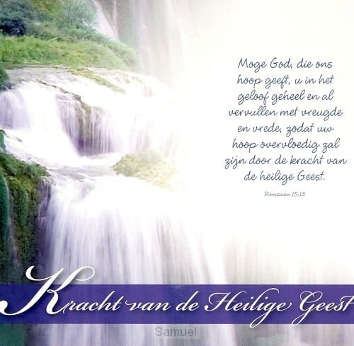 Moge God, die ons hoop geeft, u in het geloof geheel en al vervullen met vreugde en vrede, zodat uw hoop overvloedig zal zijn door de kracht van de Heilige Geest. Romeinen 15 ; 13.