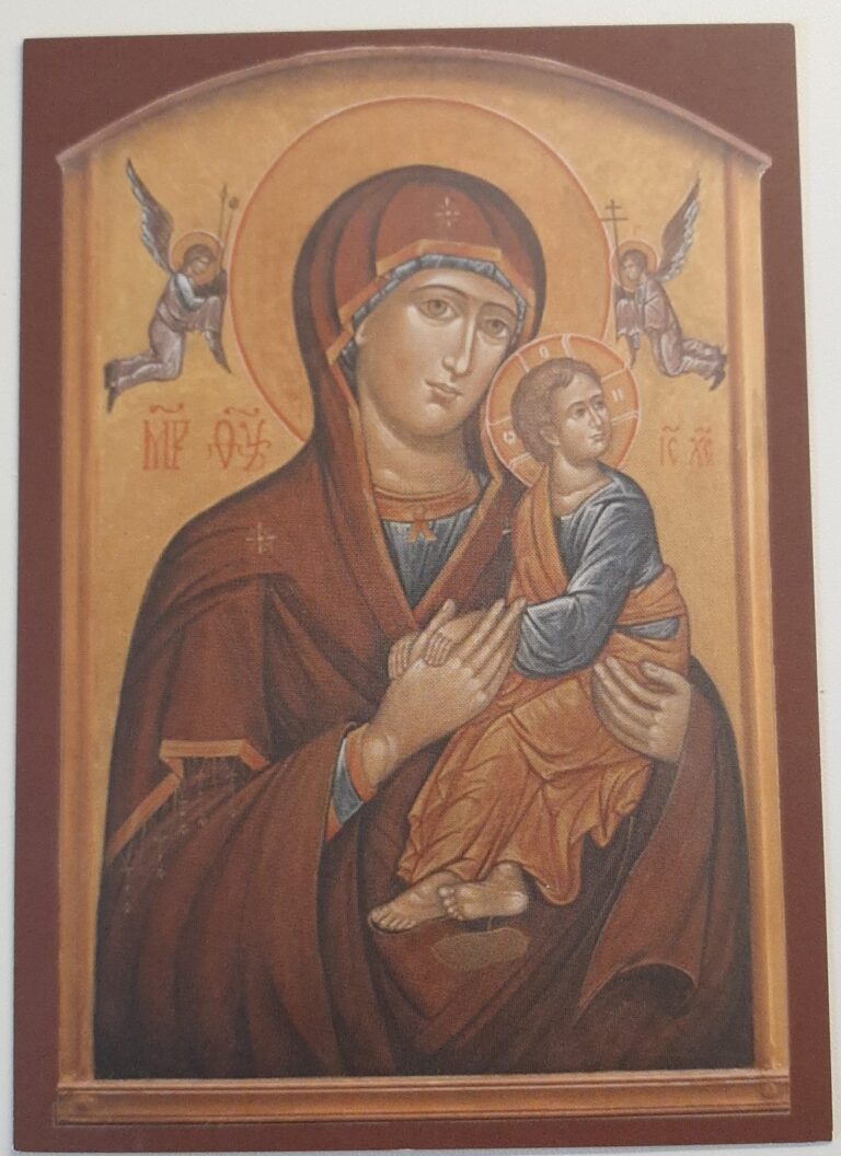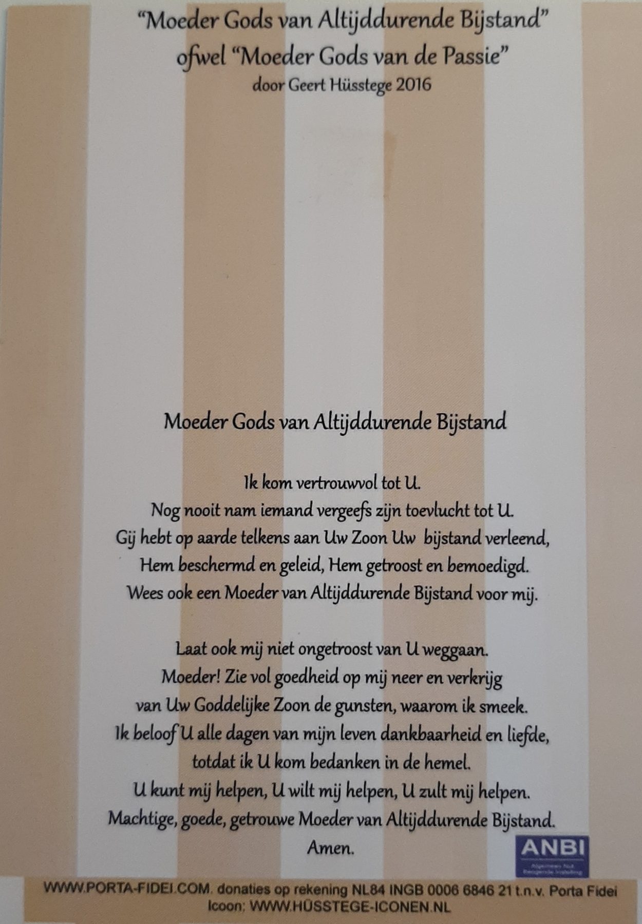 Icoonkaart (10 x 15 cm) van de icoon van ‘Moeder Gods van Altijddurende Bijstand’ geschilderd door Geert Hüsstege (2016)