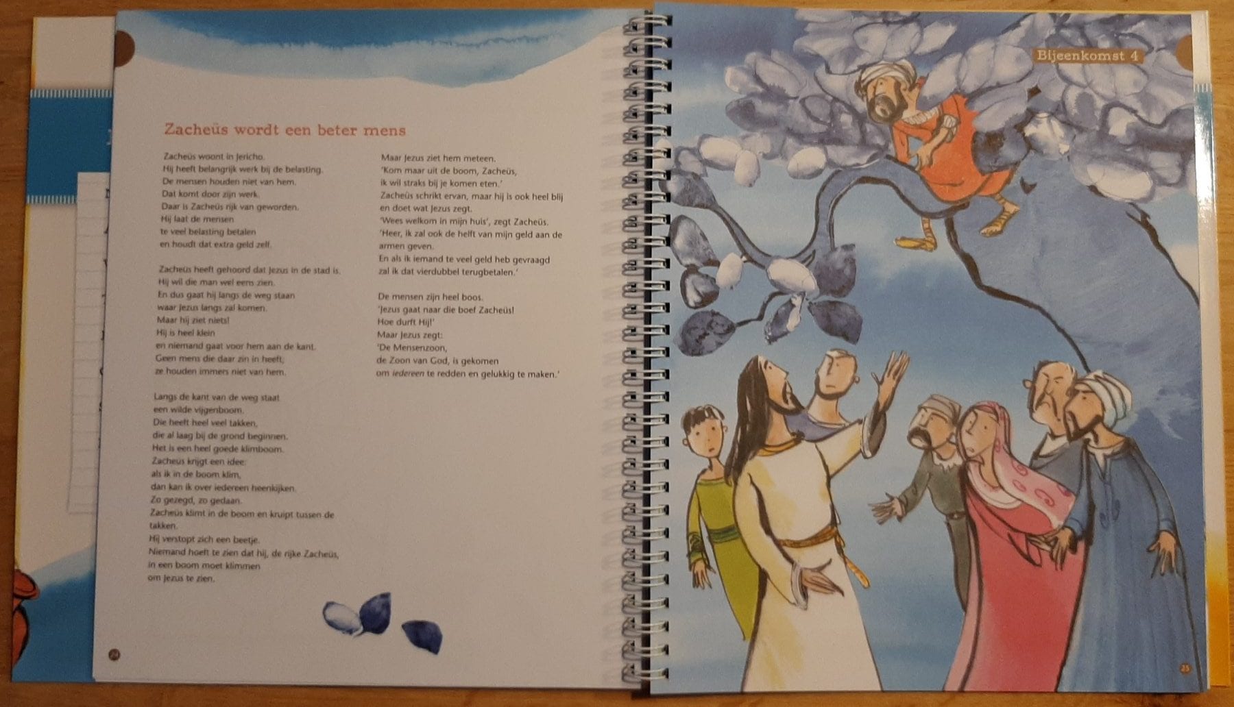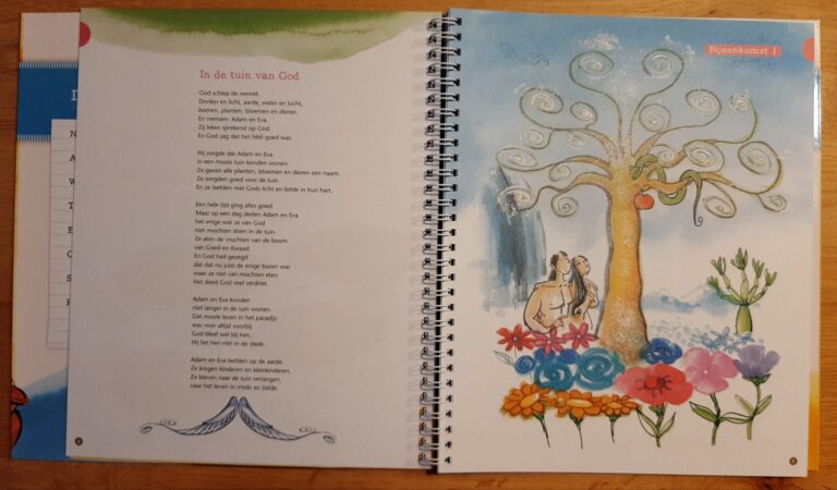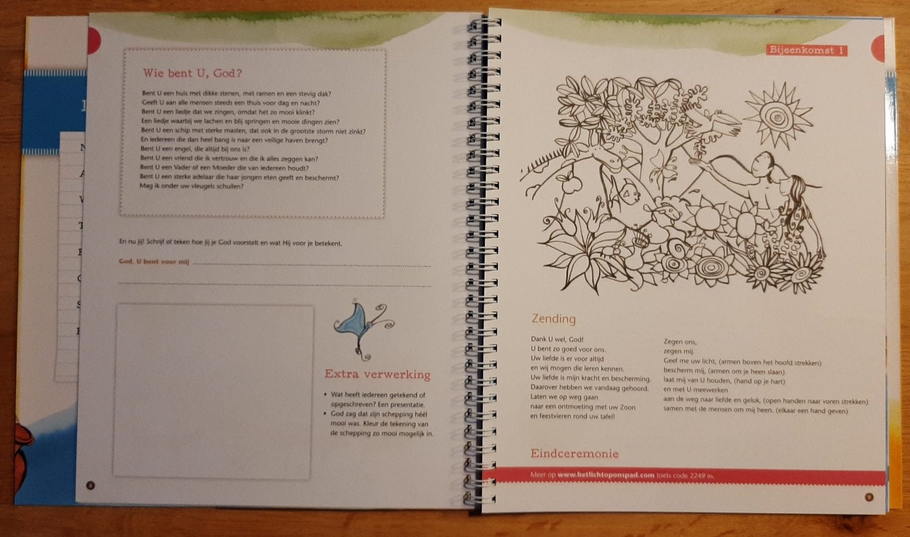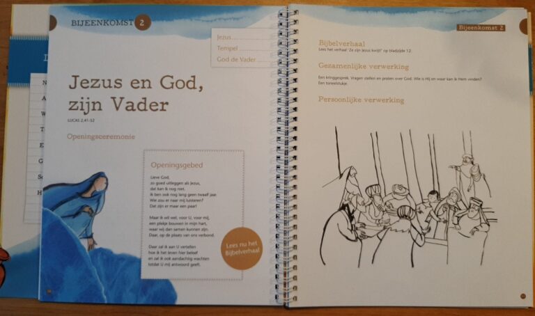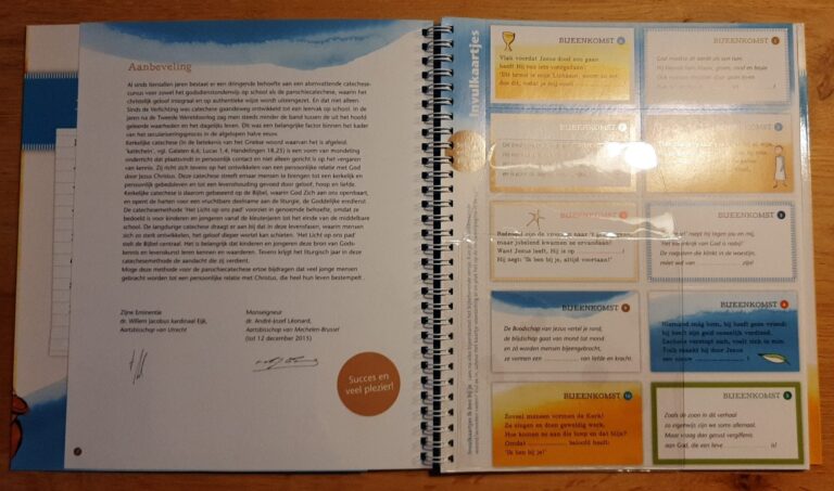 Op weg naar je eerste heilige Communie leer je veel over Jezus, zijn woorden, zijn leven, zijn dood en verrijzenis. Je leert waarom je op Jezus kunt vertrouwen. ‘Ik ben bij je’, heeft hij ons beloofd. En je ontdekt waarom het fijn is om bij Hem te horen in de Communie. (10 bijeenkomsten: 8 voor en 2 na de eerste heilige Communie). Een vrolijk geïllustreerd werkboek met verborgen ringband. Mét als extra voor de communicant: een vriendenboekje, een vierwijzer (legt stap voor stap de eucharistie uit) en invulkaartjes! Voor de begeleiders is er een apart begeleidersboek.