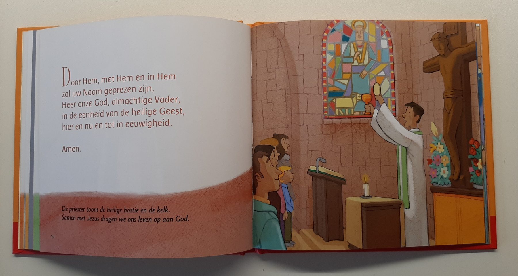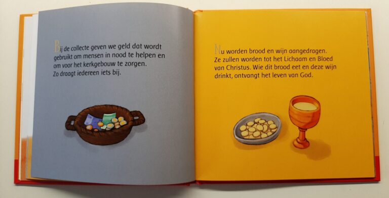 Een zelf – lees en kijkboekje voor kinderen van 5-8 jaar, waarin de grote momenten van de eucharistieviering stap voor stap worden uitgelegd. Met illustraties waarin iedereen zich kan herkennen. Zo vier je de Heilige Mis mee!