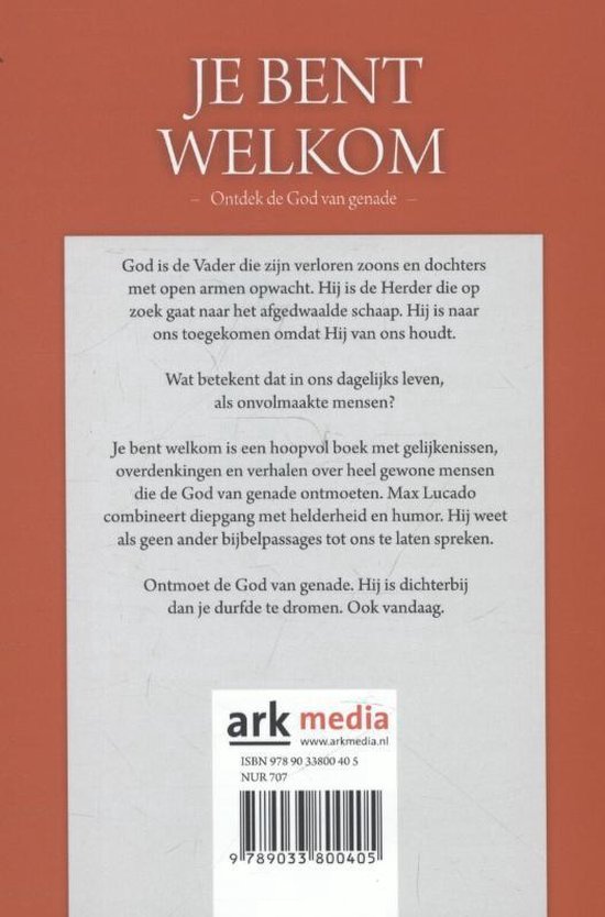 God is de Vader die zijn verloren zoons en dochters met open armen opwacht. Hij is de herder die op zoek gaat naar het afgedwaalde schaap. Hij is naar ons toegekomen omdat Hij van ons houdt. Wat betekent dat in ons dagelijks leven, als onvolmaakte mensen? Je bent welkom is een hoopvol boek met gelijkenissen,