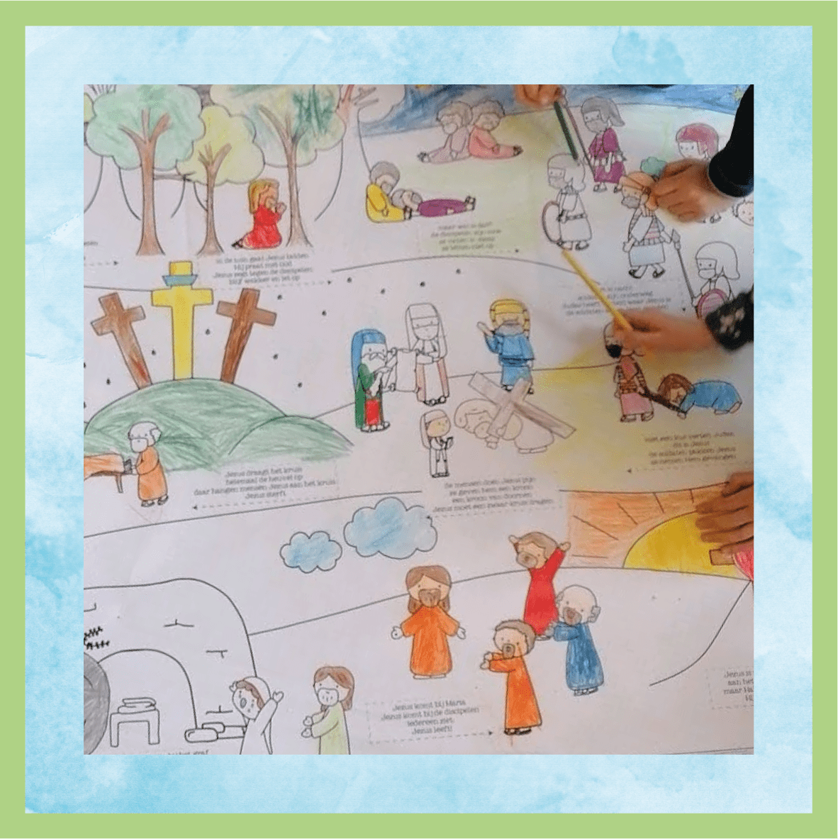Samen kleuren, het Paasverhaal beleven én iets leuks maken om op te hangen in de kamer.