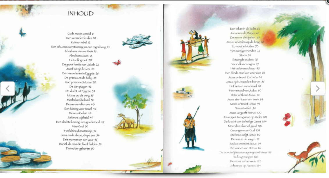 Meer dan 50 Bijbelverhalen voor jonge kinderen. Korte, beknopte verhalen die kinderen helpen kennis te maken met de rijke inhoud van de Bijbelverhalen. Met kleurrijke en vriendelijke illustraties.