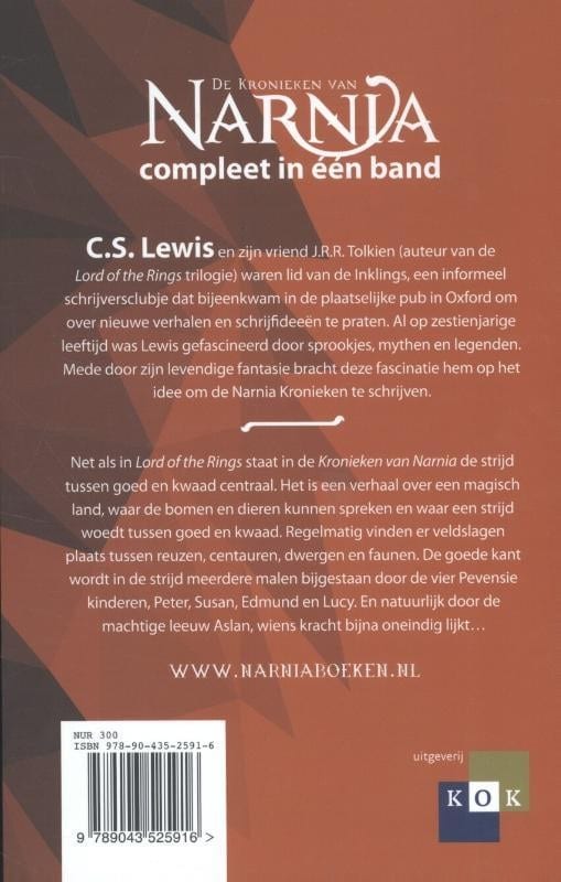 In ‘De complete Kronieken van Narnia’ staat de strijd tussen goed en kwaad centraal. Het is een verhaal over een magisch land, waar de bomen en dieren kunnen spreken. Regelmatig vinden er veldslagen plaats tussen reuzen, centauren, dwergen en faunen. De goede kant wordt in de strijd meerdere malen bijgestaan door vier kinderen: Peter, Susan, Edmund en Lucy Pevensie. En natuurlijk de machtige leeuw Aslan, wiens kracht bijna oneindig lijkt…