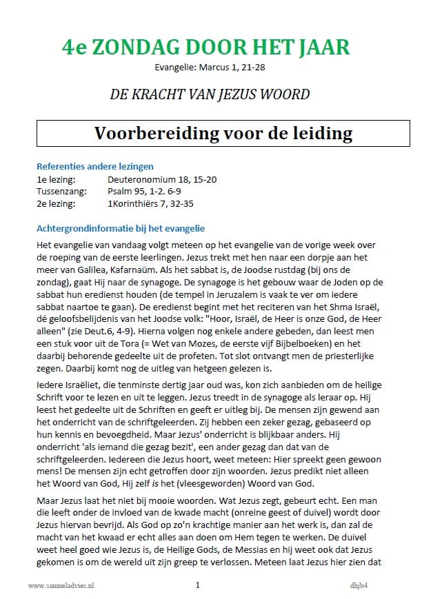 Voorbereiding leiding – ’15de zondag door het jaar B