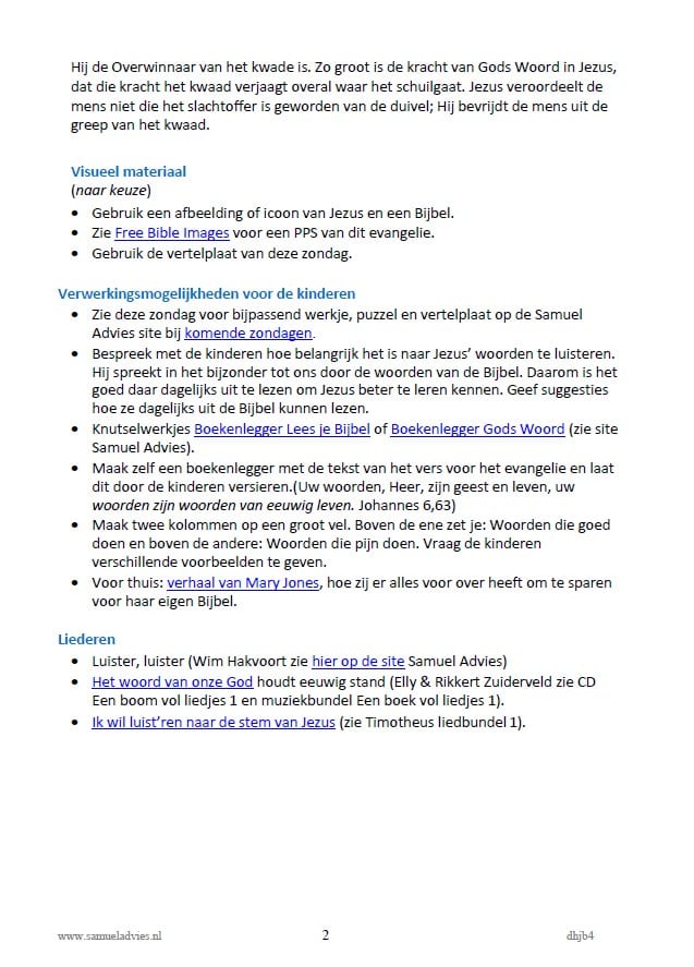 Verder vind je allerlei praktische aanwijzingen voor de kernboodschap van het evangelie, mooi visueel materiaal, passende liedjes en extra creatieve verwerkingen. Ook vind je tips voor een gezinsviering voor de betreffende zondag.