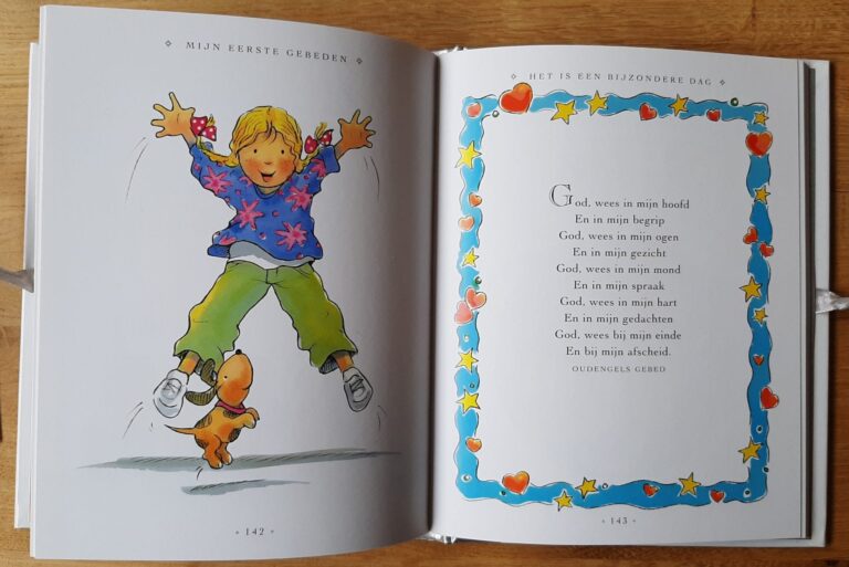 Prachtig gebonden boekje met gebeden voor alle omstandigheden, zodat kinderen zelf kunnen bidden. Vrolijk geïllustreerd met traditionele en eigentijdse gebeden uit de dagelijkse leefwereld van kinderen; over de prachtige wereld, de dieren, het eten, mijn familie, help me goed te zijn, gebedjes voor het slapen gaan en gebedjes voor bijzondere dagen.