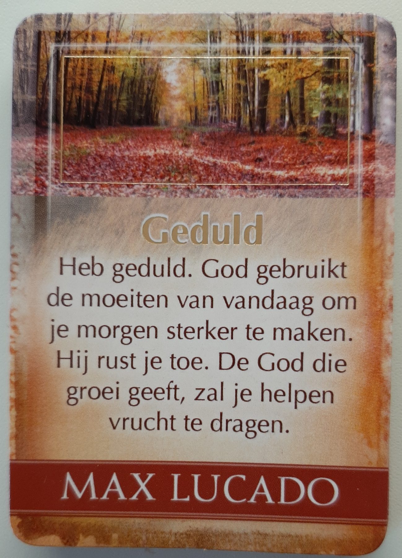 Heb geduld. God gebruikt de moeiten van vandaag om je morgen sterker te maken. Hij rust je toe. De God die groei geeft, zal je helpen vrucht te dragen.