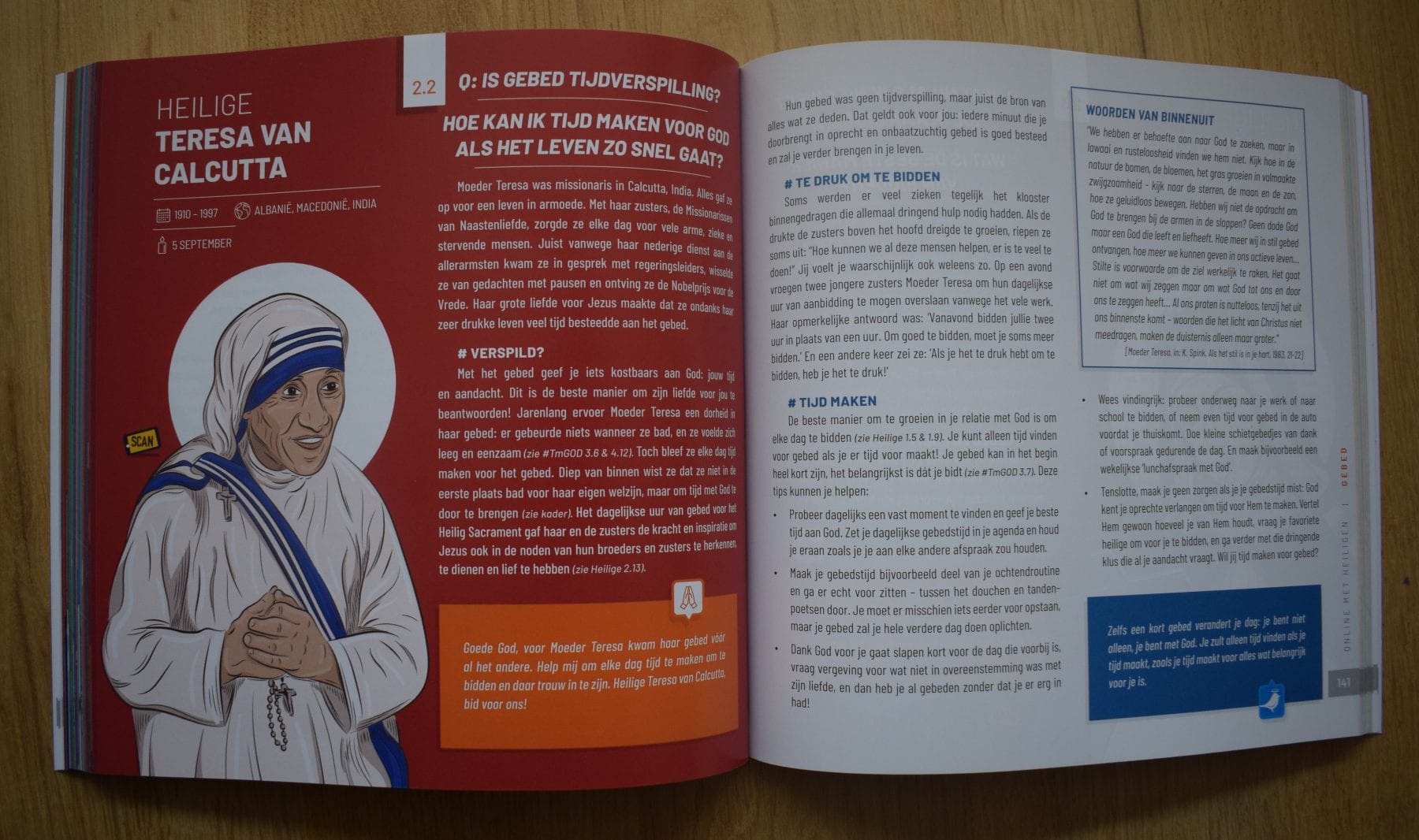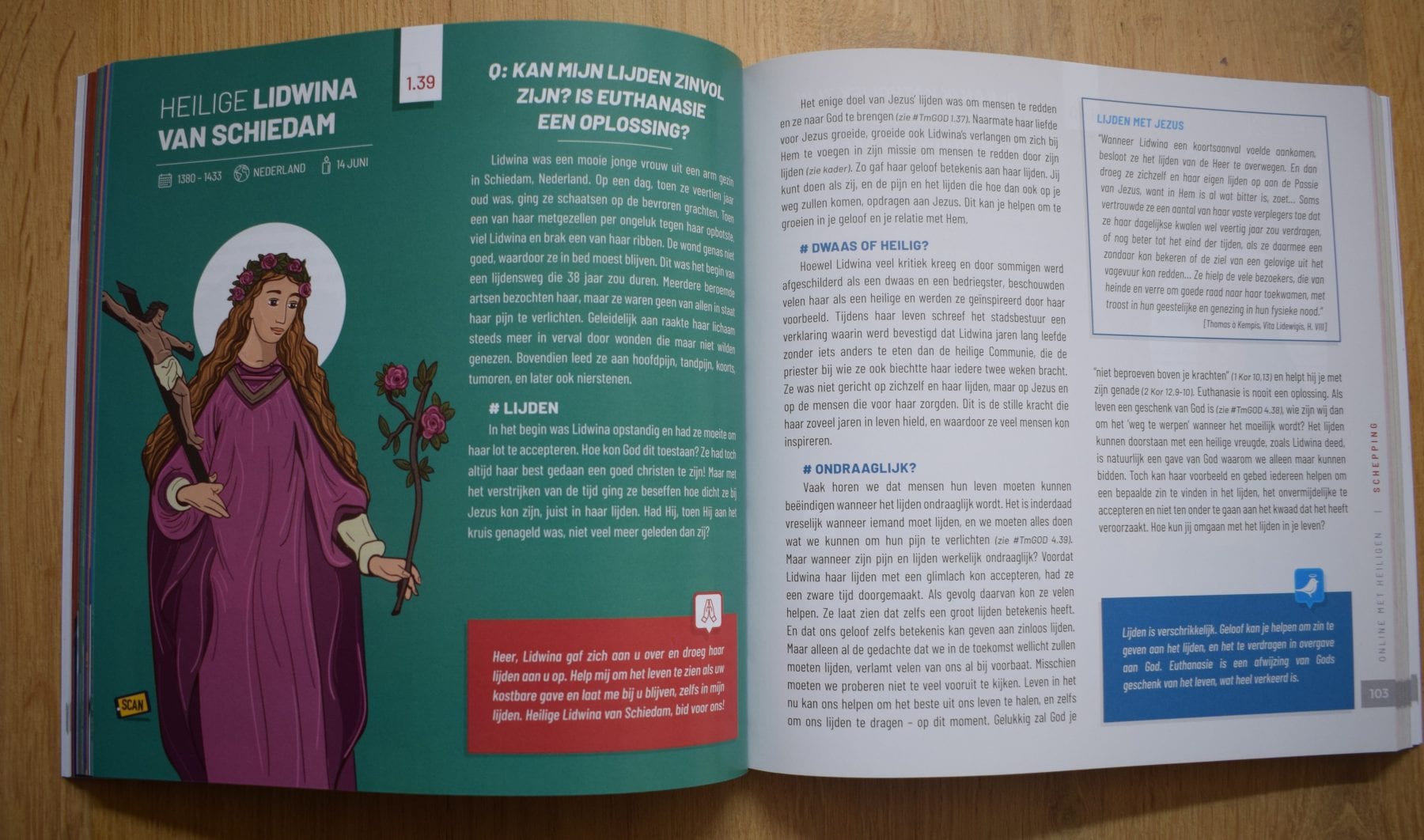 Dit boek biedt een ontmoeting met 100+ Heiligen. Hun inspirerende levensverhalen zijn gekoppeld aan moderne vragen, en samen met hen gaan we op zoek naar antwoorden. Op elke dubbele pagina wordt je bekend gemaakt met één van de heiligen. Met verschillende quotes, feiten en bij elke heilige een passend gebed.