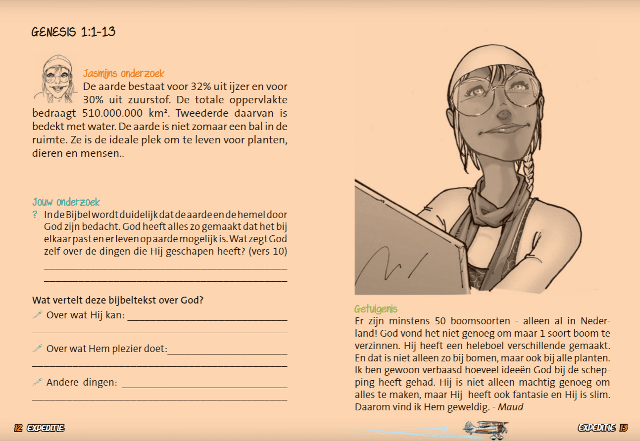 Heb jij zin in spannende ontdekkingsreizen door de Bijbel? Samen met de vrienden Jasmijn, Jara en Joep maak je van dichtbij de spannendste verhalen mee. Ga mee op een reis door de tijd en ontdek alles vanaf het begin van de wereld – en leer indrukwekkende personen kennen zoals Adam, Abraham en Isaak!