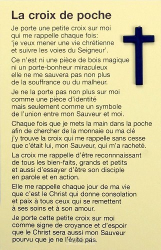 Klein stevig kaartje met klein kruisje en een mooi gedicht over de betekenis van het Kruis. Bedoeld om altijd bij je te dragen in je tas als teken van geloof en hoop omdat Christus uit liefde zijn leven voor jou heeft gegeven op het kruis.