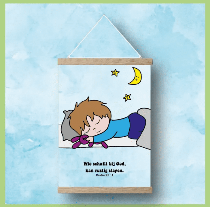 Prachtige poster met tekst ‘Wie schuit bij God kan rustig slapen – Psalm 91:1.’
