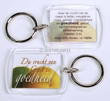 Sleutelhanger met tekst Vruchten van de Geest uit Galaten 5,22