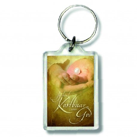 Sleutelhanger met de bemoedigende tekst die voor jong en oud is: Jij bent kostbaar voor God! Mooi om als cadeautje weg te geven!