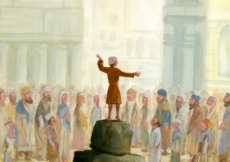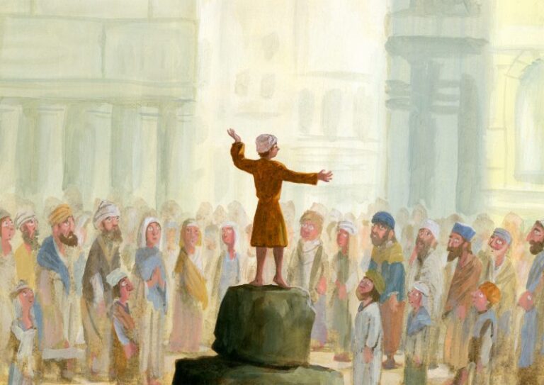 Over de man die ‘Nee!’ zei: Jona de profeet trekt zijn eigen plan, maar haalt daarmee een nat pak. Na drie dagen in de buik van een grote vis krijgt Jona spijt… zou hij zijn lesje geleerd hebben?