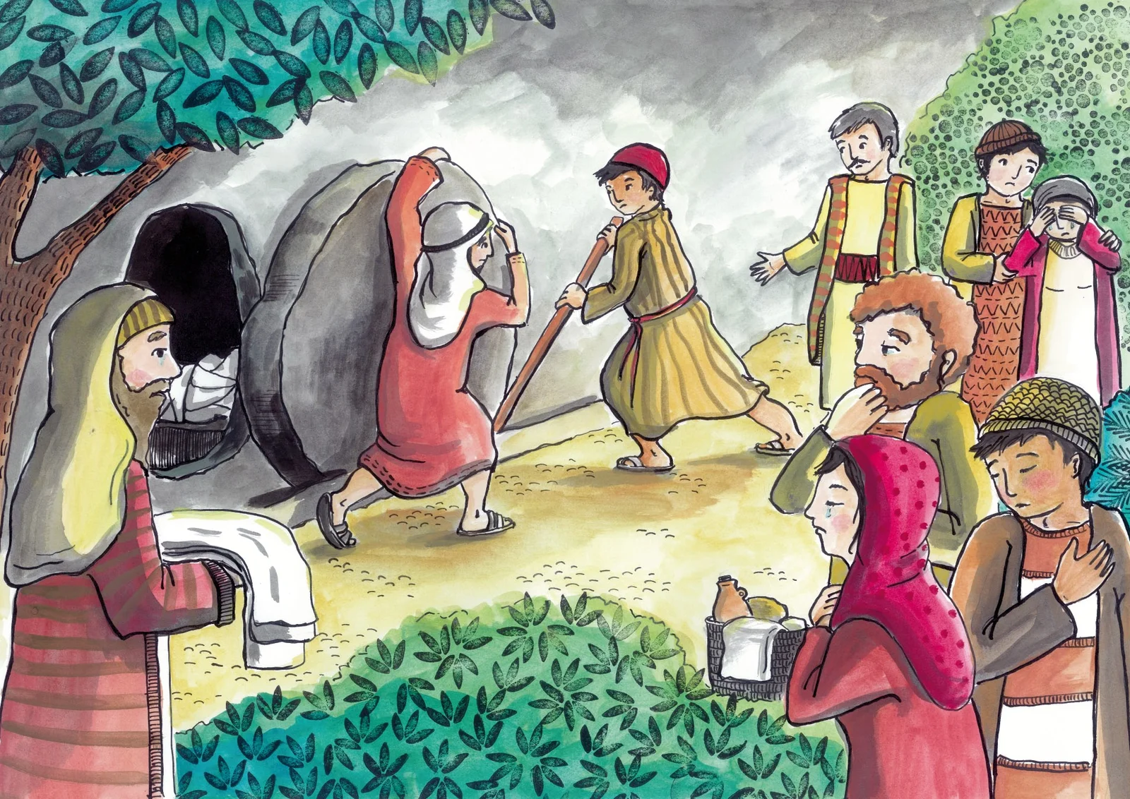 Ook de intocht van Jezus in Jeruzalem, dat met Palmpasen gevierd wordt, is in het verhaal opgenomen.