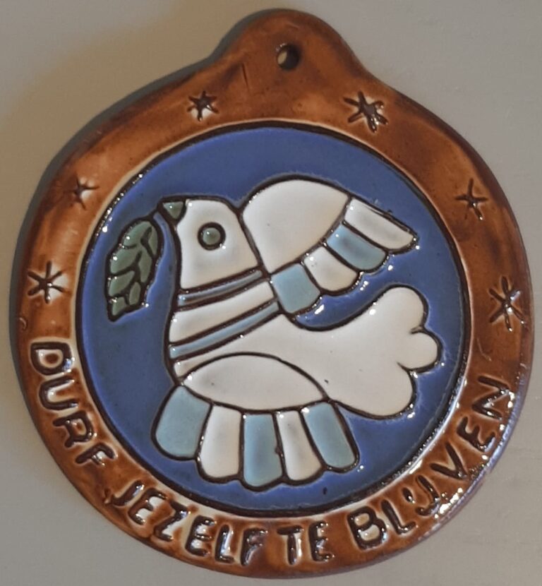 Keramieken vormseltegel van circa 12 cm in omtrek. Een mooi cadeau voor een tiener die de overgang naar de middelbare school gaat maken en soms moeite zal hebben zichzelf in een groep te handhaven.
