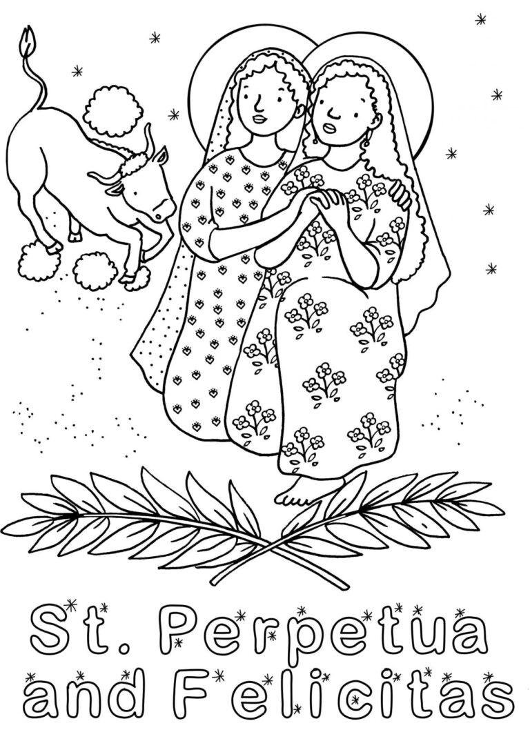 Een kleurplaat van de heiligen Perpetua en Felicitas. We vieren hun feest op 7 maart (klik hier voor hun levensbeschrijving) De tekening is gemaakt door Laetitia Zink; zij heeft ook...