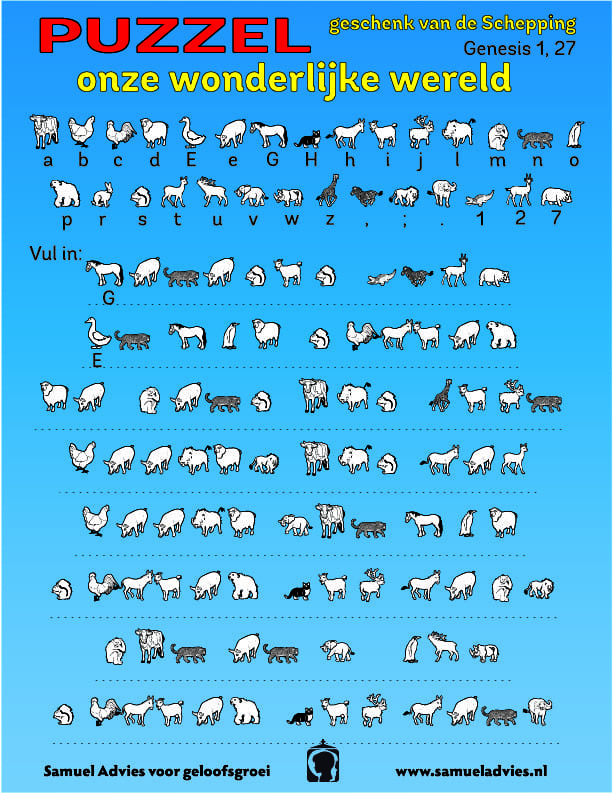 Op de voorzijde een leuke puzzel en op de achterzijde de oplossing. Voor de kinderen alleen de voorzijde printen!