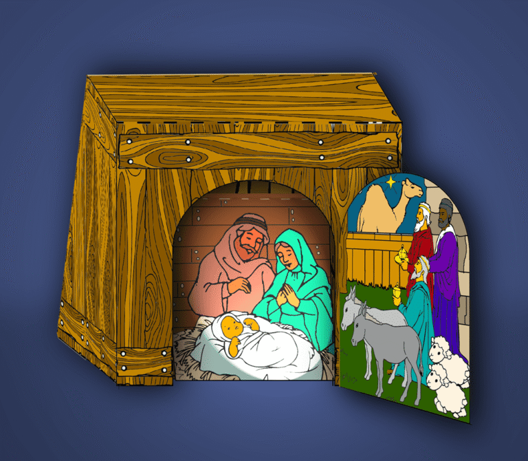 Kerststalletje om in te kleuren, te knippen, vouwen en plakken en dan mooi ergens neer te zetten. Speciaal voor oudere kinderen die graag knutselen. Klik op het plaatje voor een...