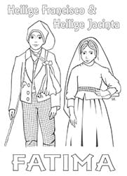 Een kleurplaat van de heilige Francisco en de heilige Jacinta aan wie Maria verscheen in Fatima. De DVD ‘De dag waarop de zon danste’ vertelt dit mooie verhaal aan kinderen....