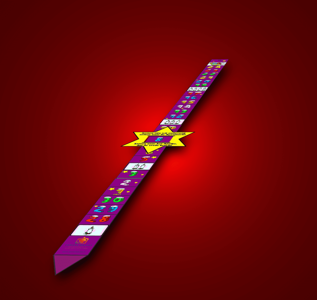 Een ‘lint’ van een meter lang waarover een ster schuift die aangeeft hoe ver we zijn in de advent.