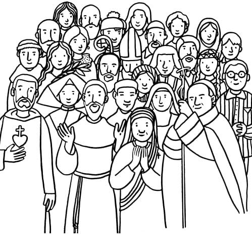 Een kleurplaat met heel veel heiligen! Het Hoogfeest van Allerheiligen vieren we op 1 november. Deze kleurplaat is getekend door Laetitia Zink. Voor elke zondag is er een kleurplaatje beschikbaar via de ‘abonnementen liturgisch jaar A/B/C’.