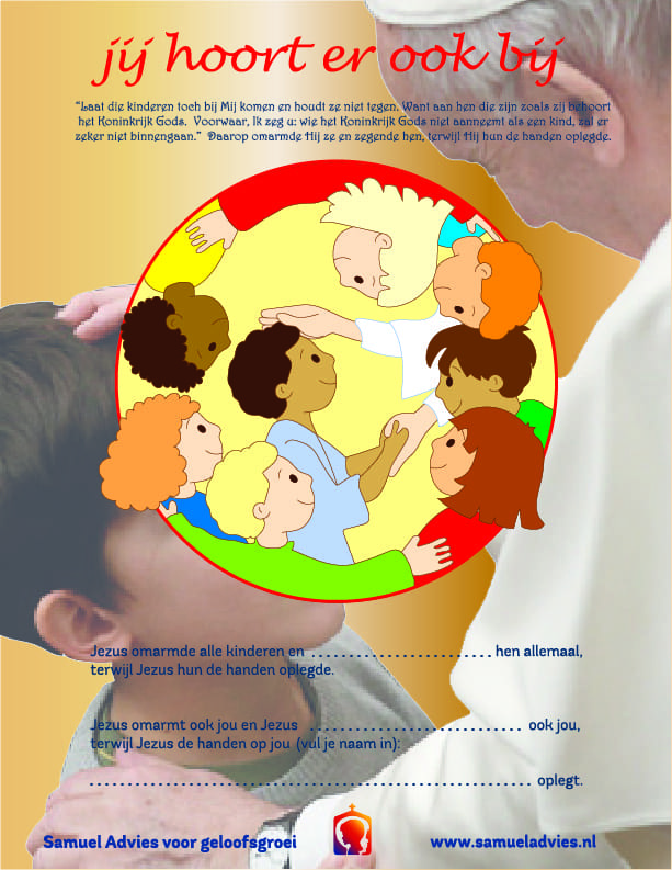 Je kunt Jezus niet zien maar weet dat Hij ieder kind zegent en zegt: Ik hou van jou, JIJ hoort er ook bij!