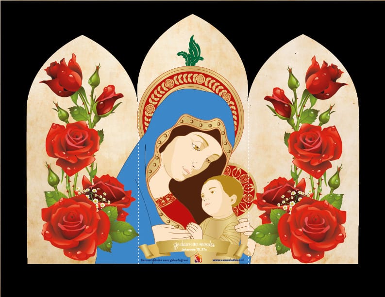 In de meimaand en de oktobermaand denken we speciaal aan onze Moeder Maria. Maak hier maar een mooi schilderijtje van om in de kamer te zetten of iemand cadeau te geven.
