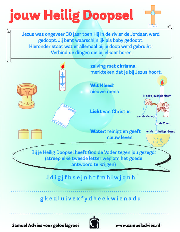Vul in wat er allemaal bij het Heilig Doopsel hoort en wat God de Vader toen tegen jou zei!