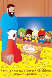 Kerstkleurplaat. Lieve afbeelding met de kindjes die ook bij Jezus komen kijken. Mooie uitdeel kleurplaat rond de kerstdagen.