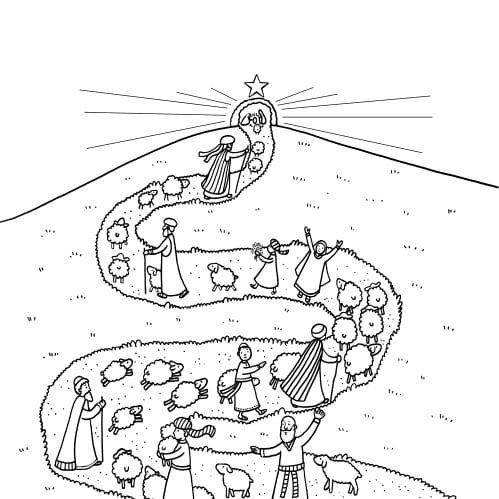 Een kleurplaat voor de adventstijd van Laetitia Zink. Zij heeft voor elke zondag ook een kleurplaat getekend, onderdeel van de abonnementen ‘liturgisch jaar A/B/C’.