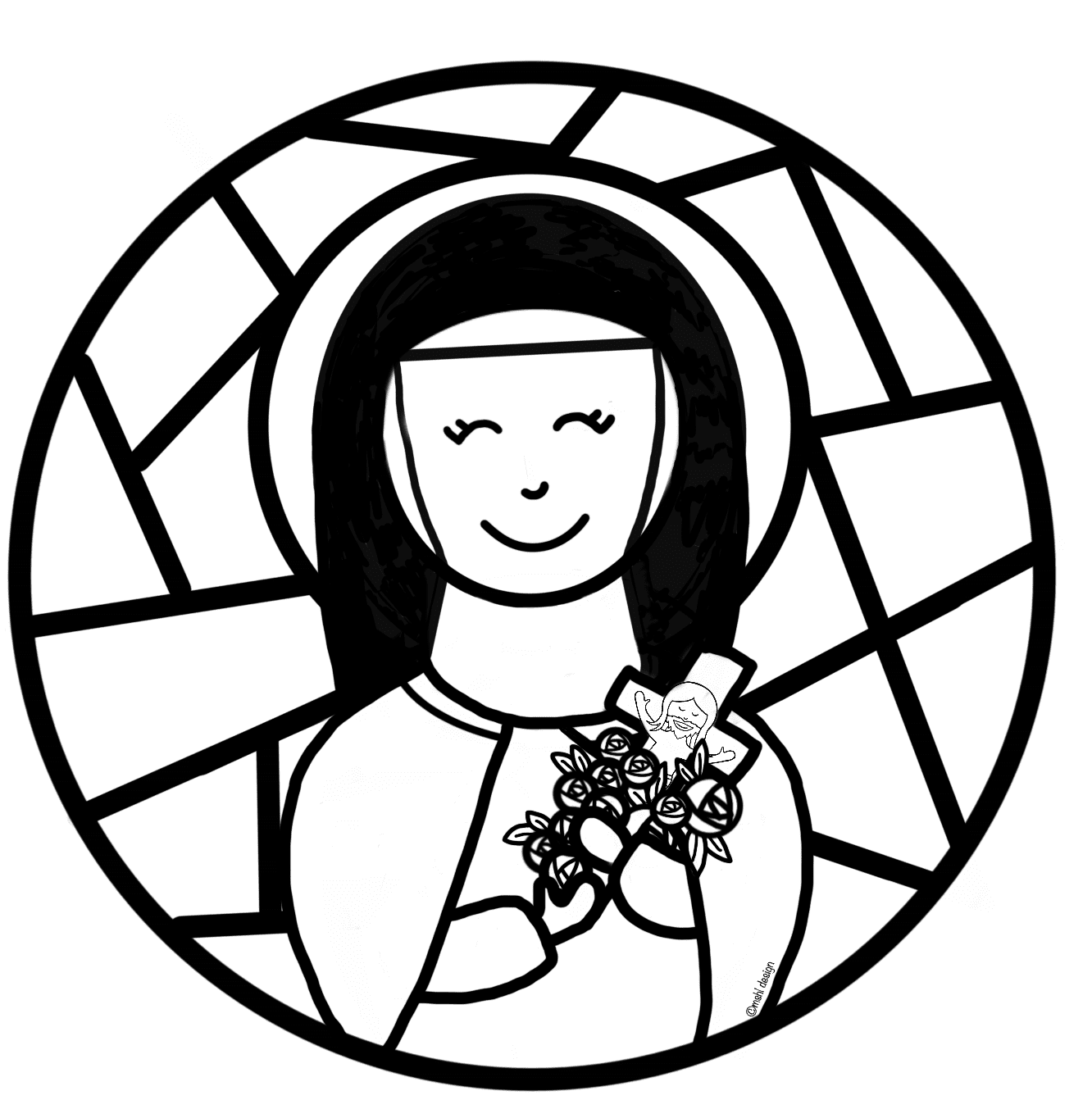 Een kleurplaat van ©Crafty Little Blessings van de heilige Theresia van Lisieux. We vieren haar feest op 1 oktober (klik hier voor beschrijving van deze heilige).