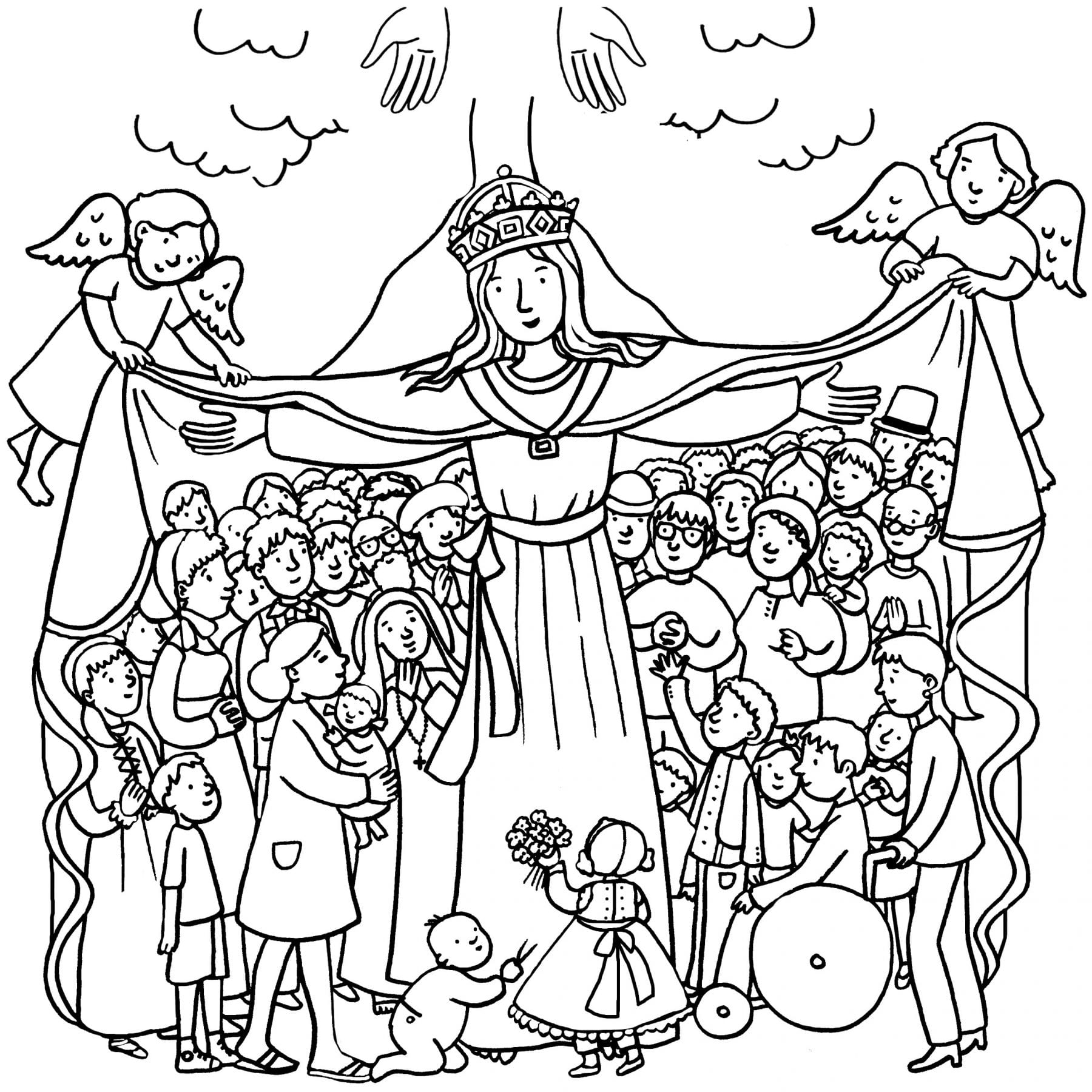 Een mooie kleurplaat Maria, moeder van God, onze moeder.