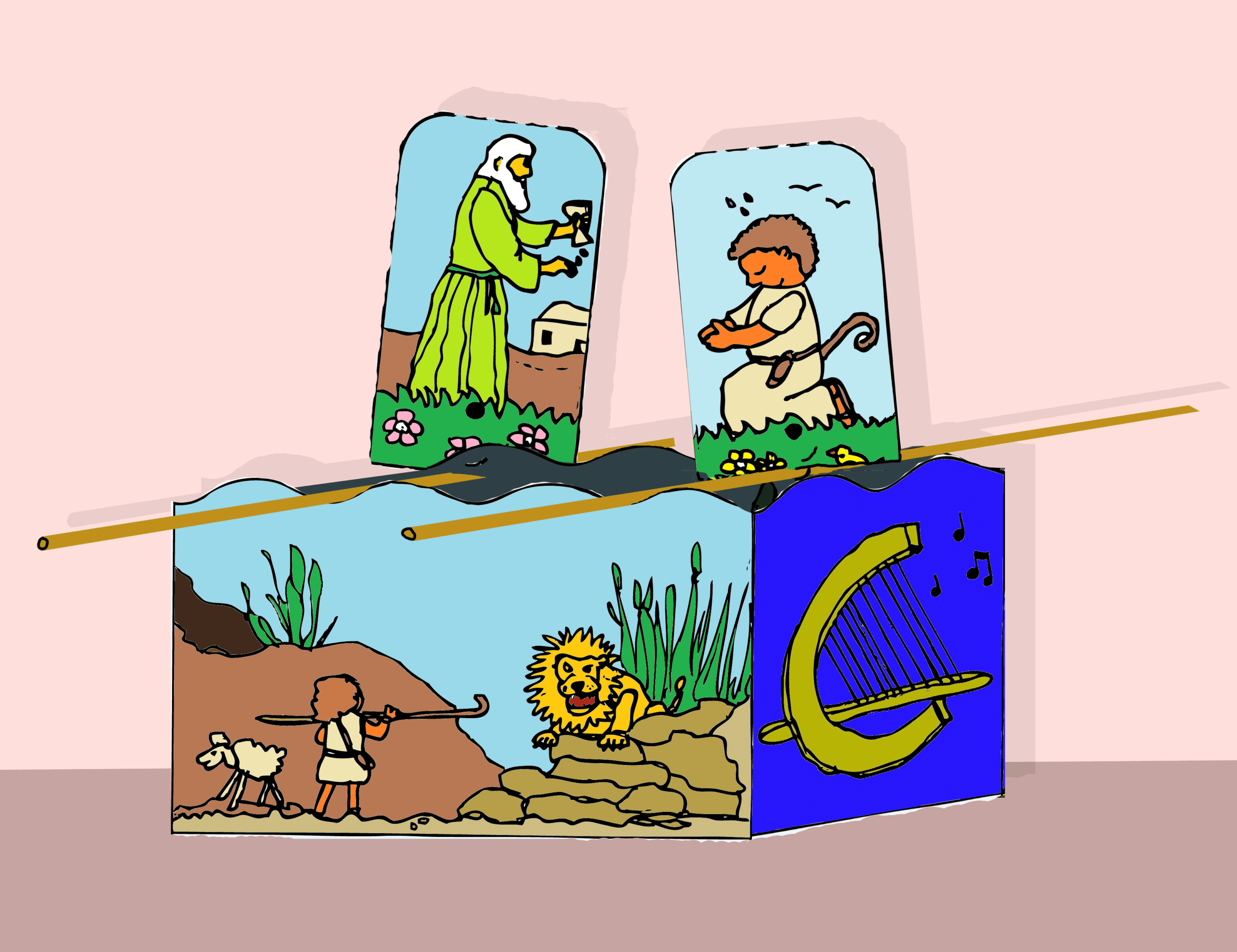 David wordt door de profeet Samuël gezalfd. Ook jij bent gezalfd, want Jezus vindt jou net zo belangrijk als de koning. Een ruimtelijk werkje om te printen op stevig papier.