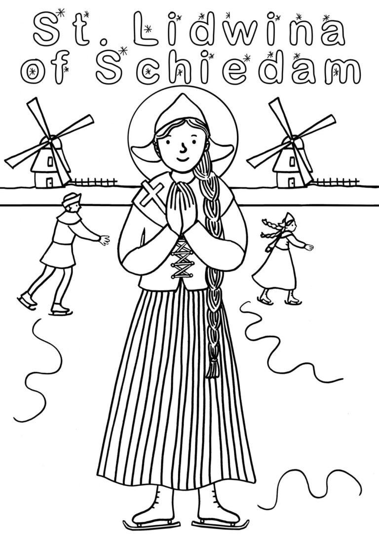 Kleurplaat heilige Lidwina van Schiedam