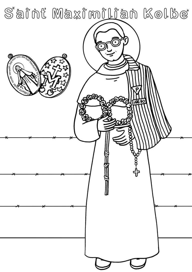 Kleurplaat heilige Maximiliaan Kolbe