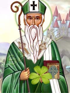 St. Patrick (Patricius) zien we vaak afgebeeld met een felgroen klavertje drie. Het verhaal gaat dat hij daarmee aan de mensen de Drie-eenheid uit heeft gelegd. Hij is de patroon van Ierland en deze dag is voor hen een nationale feestdag.